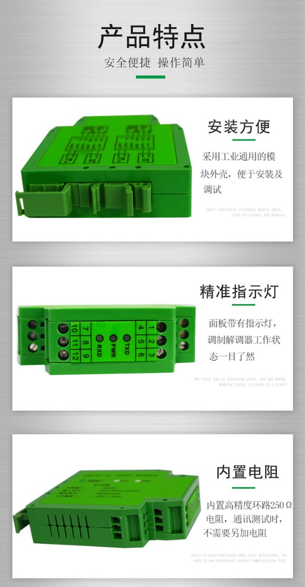 ● 采用工業(yè)通用的模塊外殼,便于安裝及調試。