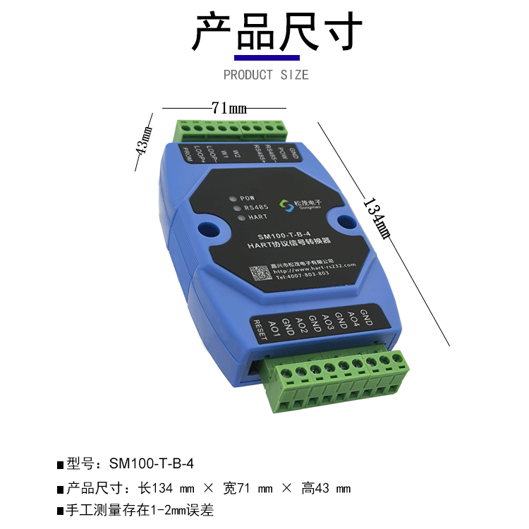 ● 安裝尺寸:長(zhǎng)134 mm × 寬71 mm × 高43 mm。