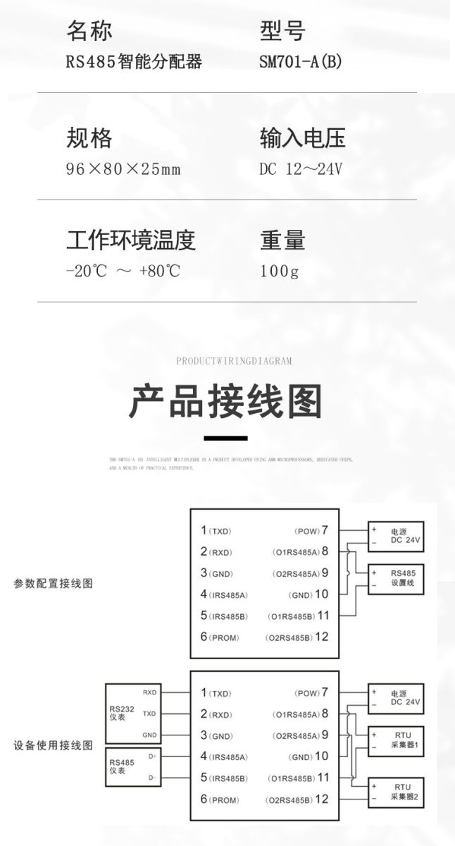● 電源輸入電壓:DC 12~24V,電源的波紋不得大于200mA,電源需提供100mA。